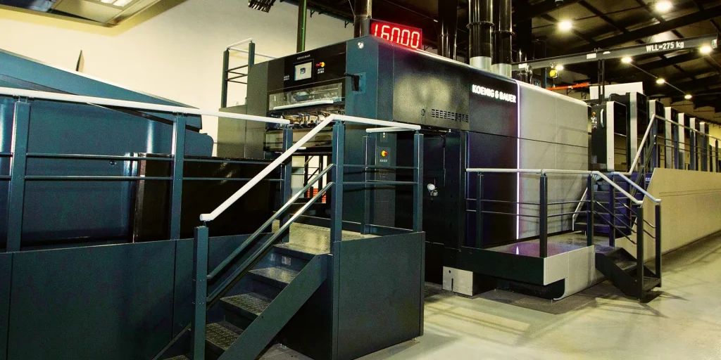 Complementando essa estrutura, contamos com a impressora da Koenig & Bauer , Rapida 145, uma das mais avançadas do setor. Com capacidade produtiva de até 16 mil folhas por hora, ela oferece velocidade, estabilidade e controle absoluto em cada etapa da impressão.